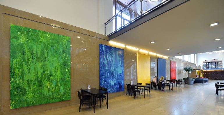 The Energy series is inspired by the five elements of energy. The strong colors of his monochromes visualize space, transformation, water and air, sun and growth, the basis for our whole universe, from animate to inanimate, from particle to atom. Energy is the ability to do work, to create and to live, and “color is energy made visible”. The project Energy has been designed for Shell and is currently on permanent display at Shell headquarters in The Hague, The Netherlands.