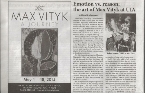 the first solo show of artist Max Vityk in New York. Curated by Walter Hoydysh of the Ukrainian Institute